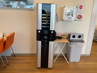無料のドリンクコーナーです。美味しいコーヒーやココア、大人気のレモンウォーターや緑茶、ミネラルウォーターをご用意いたしております。