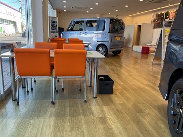 ショールームにお入りいただいて右側にサービスフロントがございます。お気軽にお声をかけてください。
